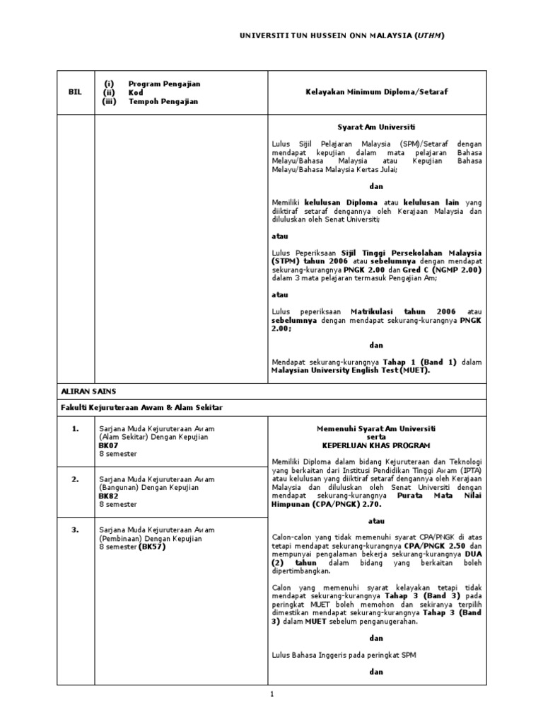 Siri Vi Senarai Keseluruhan Program Pengajian Berserta Syarat Kelayakan Mengikut Program Yang Ditawarkan Oleh Uthm Dan Umt Blog Rahsia Lulus Muet
