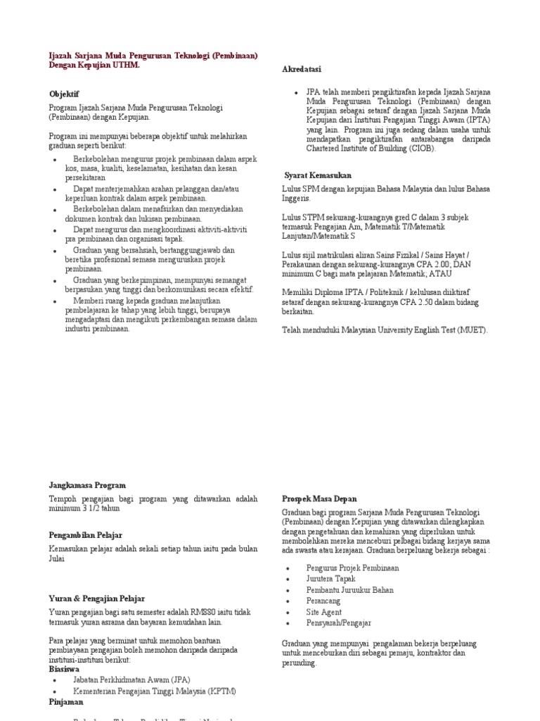 Ijazah Sarjana Muda Pengurusan Teknologi Dengan Cad Uthm Edu My Images Proforma 20102011 Fptpk Bpa Proforma Pdf Document