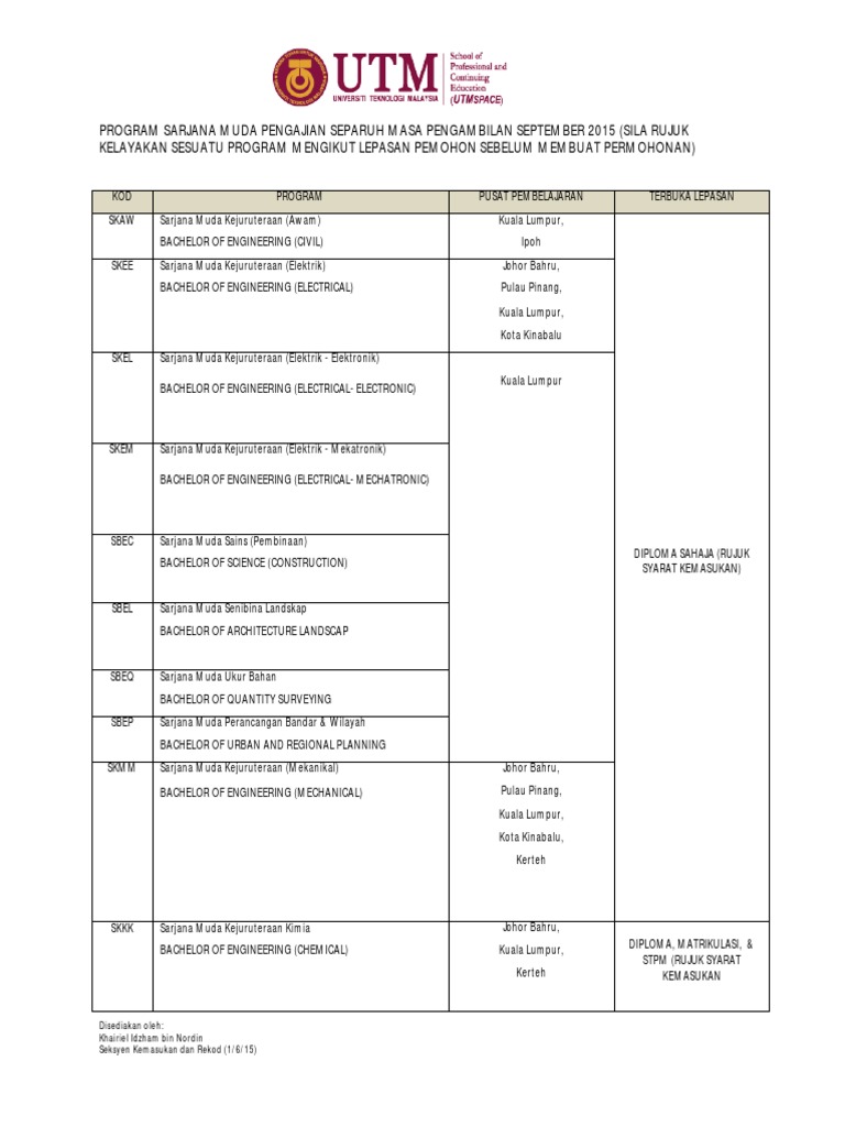 Senarai Graduan Program Pengajian Separuh Masa Utm Space