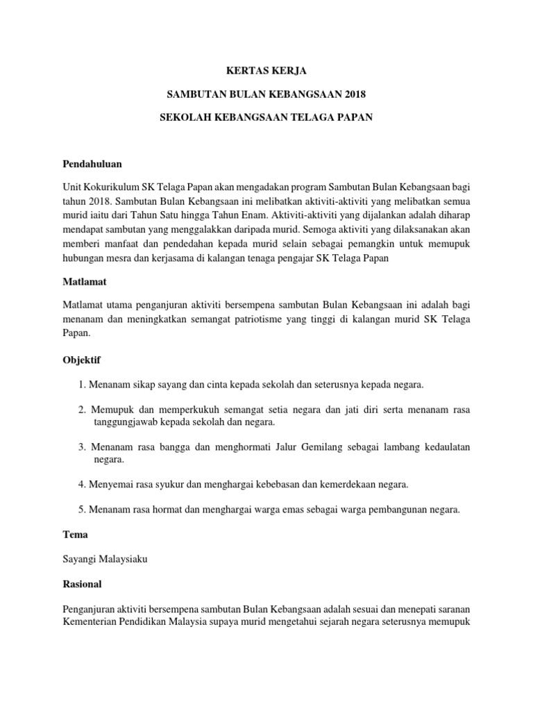 Kertas Kerja Sambutan Bulan Kebangsaan Sk Skarok 2018