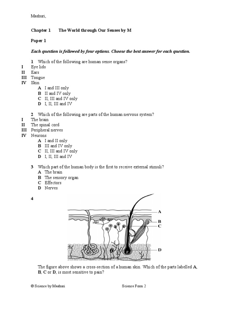 Science Form 2 Paper 1 Exam Question Rainforest Skin
