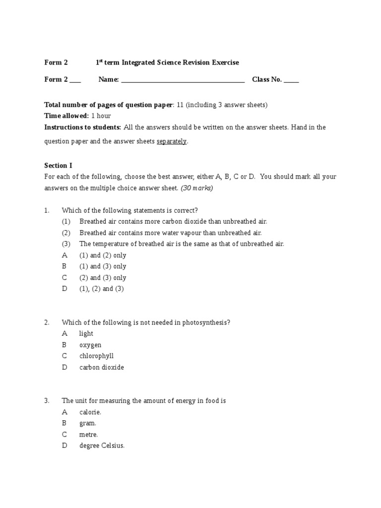 Science Form 2 Chapter 3 Exercise With Answers Exercisewalls