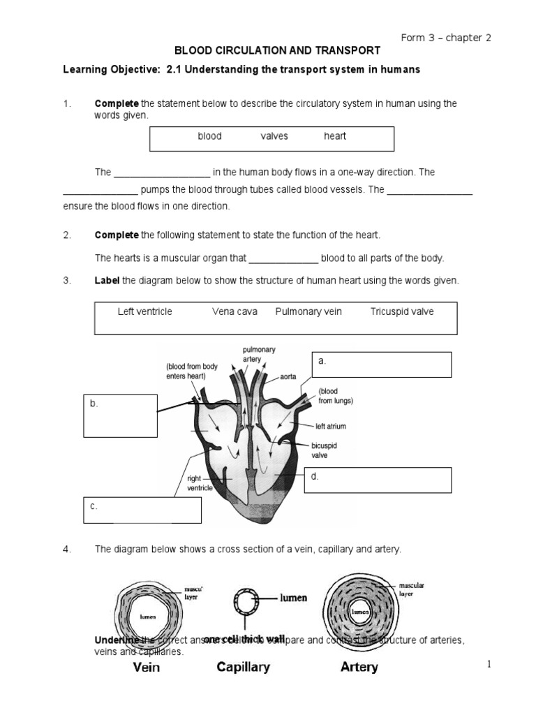 Chapter 2 Blood Circulation Transport Form 3 Science