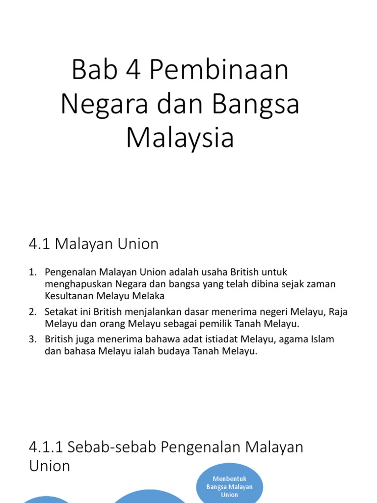 Pembinaan Negara Dan Bangsa Malaysia 4 1 Malayan Union