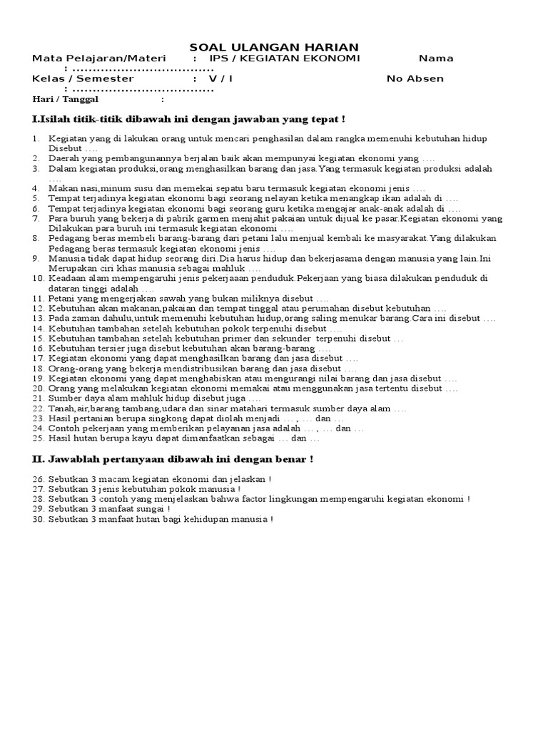 Soal Ulangan 1 Kegiatan Ekonomi