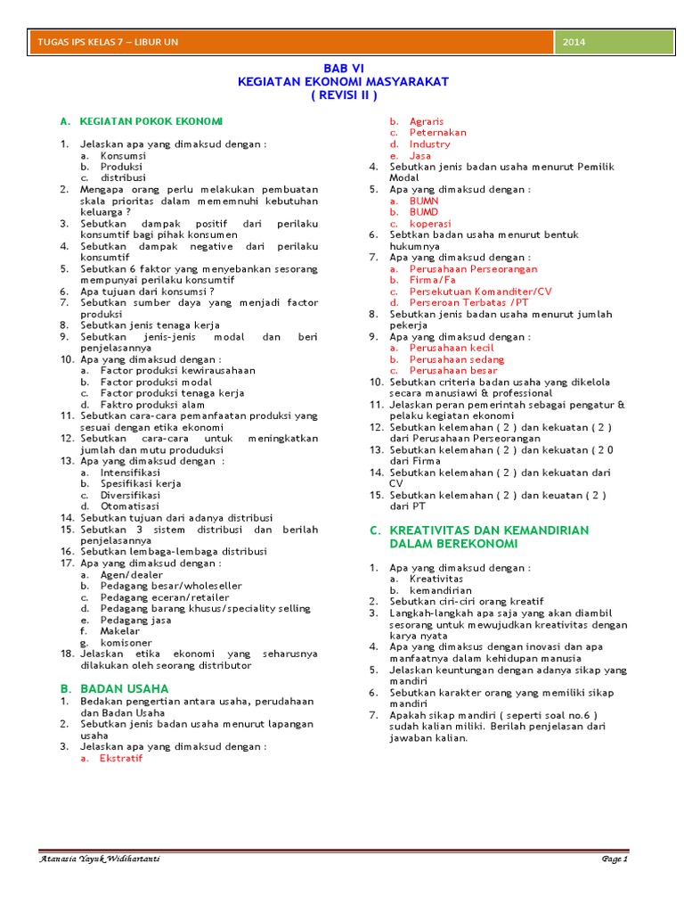 Soal Dan Jawaban Kegiatan Pokok Ekonomi