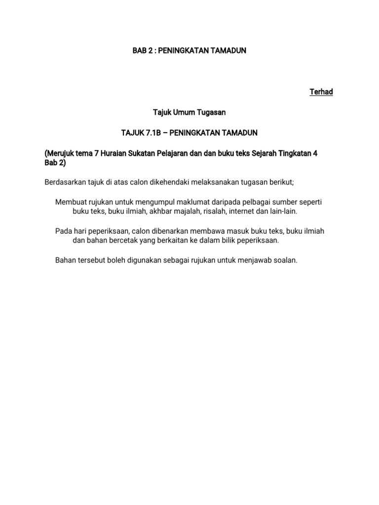 Spm Sejarah Kertas 3 F4 B2 Tajuk Umum Tugasan Tajuk 7 1 Tamadun Awal Dunia Merujuk Tema 7 Huraian Sukatan Pelajaran Dan Buku Teks Sejarah Tingkatan 4 Course Hero
