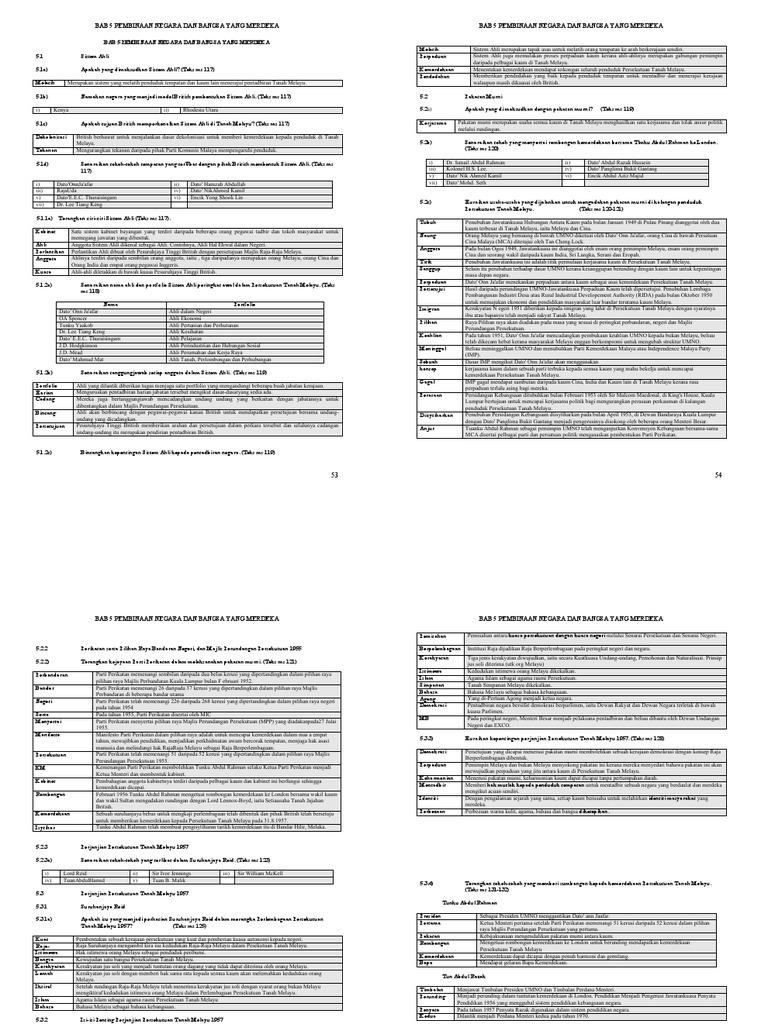Sejarah T5 Bab 5 Pembinaan Negara Dan Bangsa Yang Merdeka