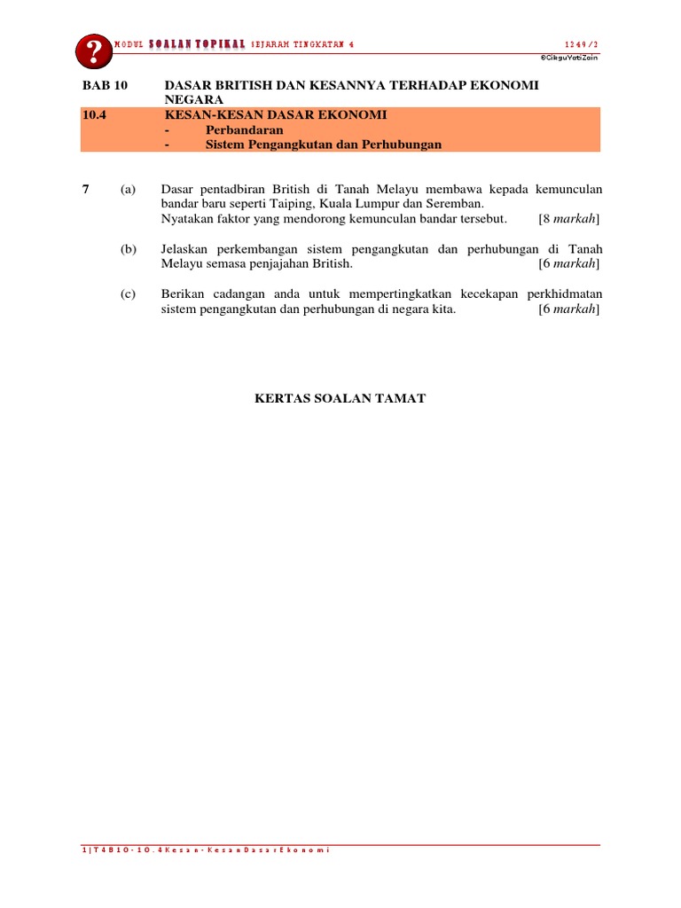 Pdf Soalan Struktur Bab 10 Dasar British Dan Kesannya Terhadap Ekonomi Negara Kumpulan 10 Mohd Zainal Mat Isa Academia Edu