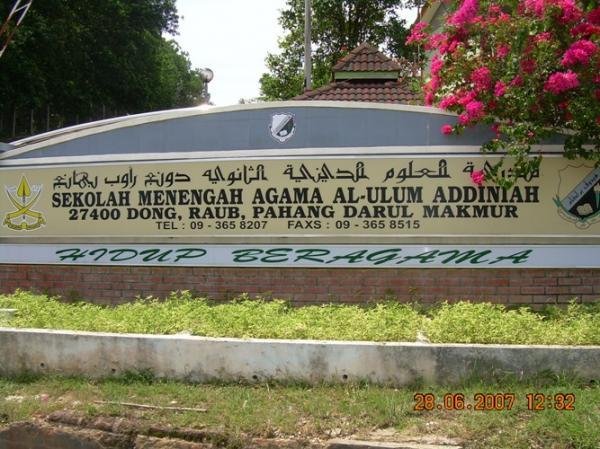 Sekolah Menengah Agama Al Ulum Addiniyyah Dong Pahang Kampung Dong 27400 Raub Pahang Malaysia