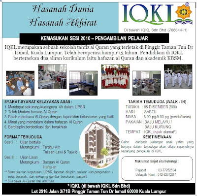 Sekolah Menengah Tahfiz Iqkl Pengambilan Pelajar Sesi 2010