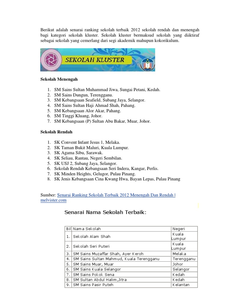 Senarai Ranking Smka Sabk Terbaik 2019 Berdasarkan Keputusan Spm 2018