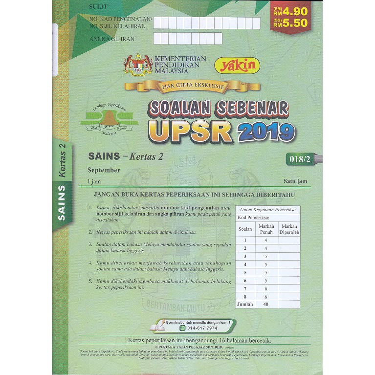 Soalan Sebenar Upsr 2016 2019 Sains Kertas 2 Shopee Malaysia