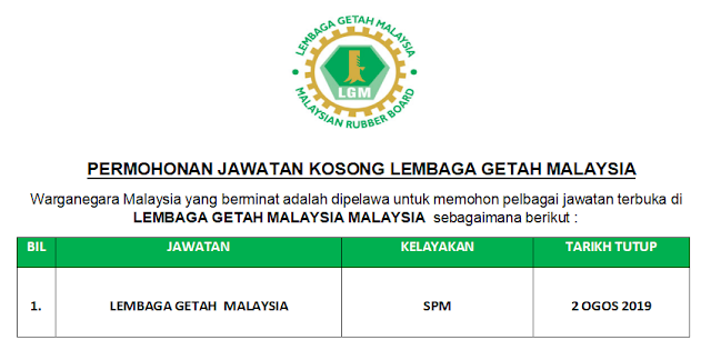 Permohonan Jawatan Kosong Lembaga Getah Malaysia Lgm 2019 Malaysia Kerjaya