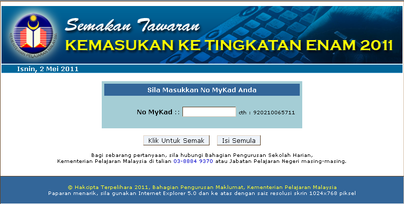 Pelajar adalah disarankan untuk melayari laman sesawang kementerian pendidikan malaysia kpm di applikasi e perkhidmatan berkala untuk mendapatkan maklumat terkini semakan. Latar belakang objektif matlamat piagam pelanggan kemasukan murid ke tingkatan enam kerangka konseptual syarat kemasukan penjenamaan semula tempoh pengajian pusat tingkatan 6 kurikulum kokurikulum pentaksiran yuran. Pada tahun lepas tarikh rasmi keputusan tawaran kemasukan murid ke tingkatan enam di sekolah menengah bantuan penuh kerajaan diumumkan. Berikut dikongsikan tarikh semakan tingkatan 6 iaitu check keputusan tawaran form 6 tahun 2020 buat panduan pelajar.