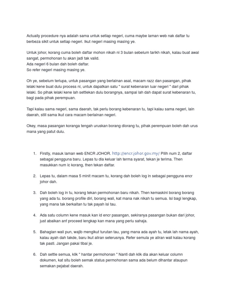 Prosedur Permohonan Nikah Negeri Johor 2015 Online E Ncr Blog Cik Az