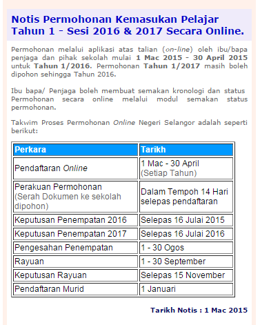 Pendaftaran Murid Tahun Satu Negeri Selangor Ambilan Tahun 2016 2017 Ciklaili