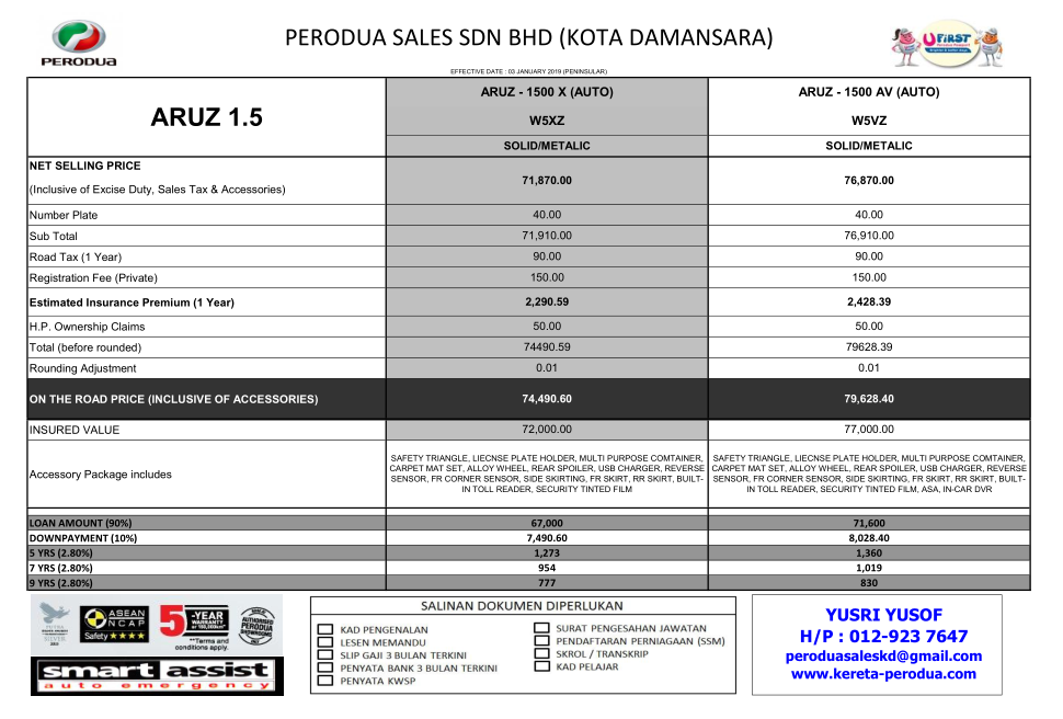 Senarai Harga Perodua Bezza Kerja Kosm
