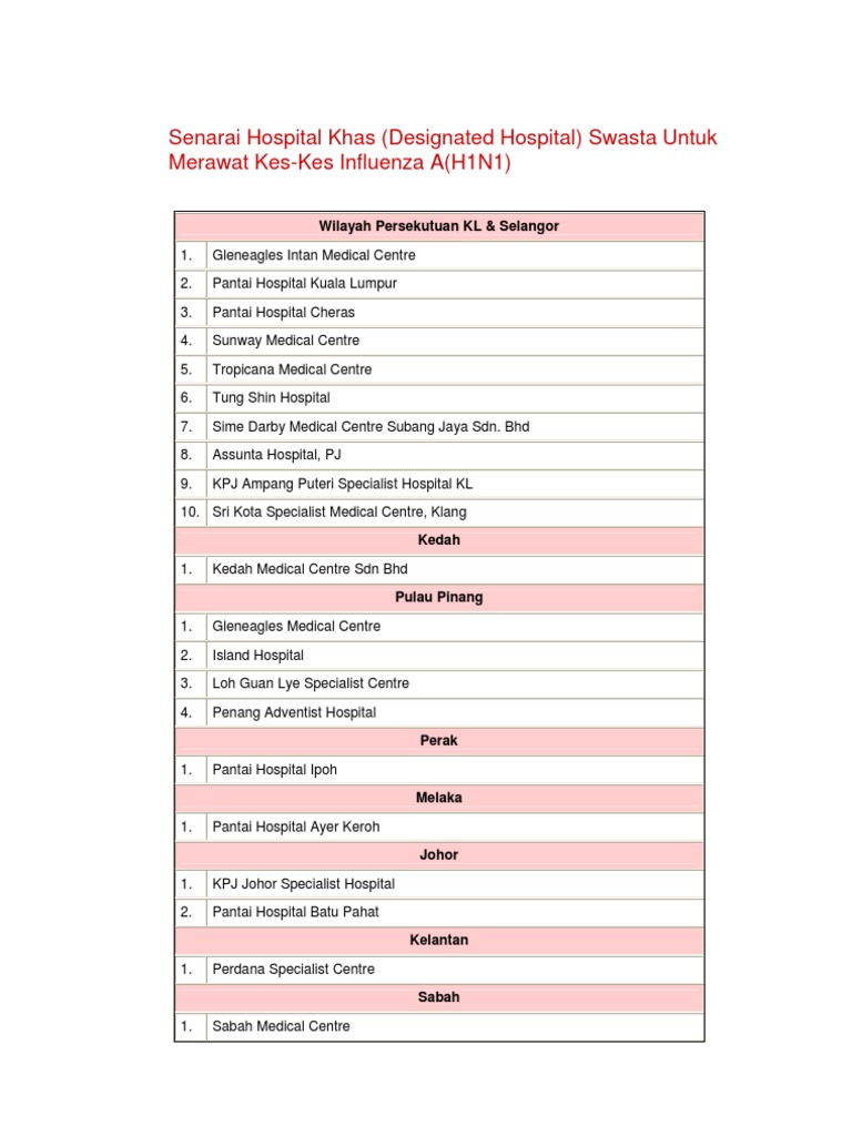 Senarai Hospital Dan Makmal Kesihatan Awam Bagi Menjalankan Ujian Pengesanan Dan Pengesahan Covid 19