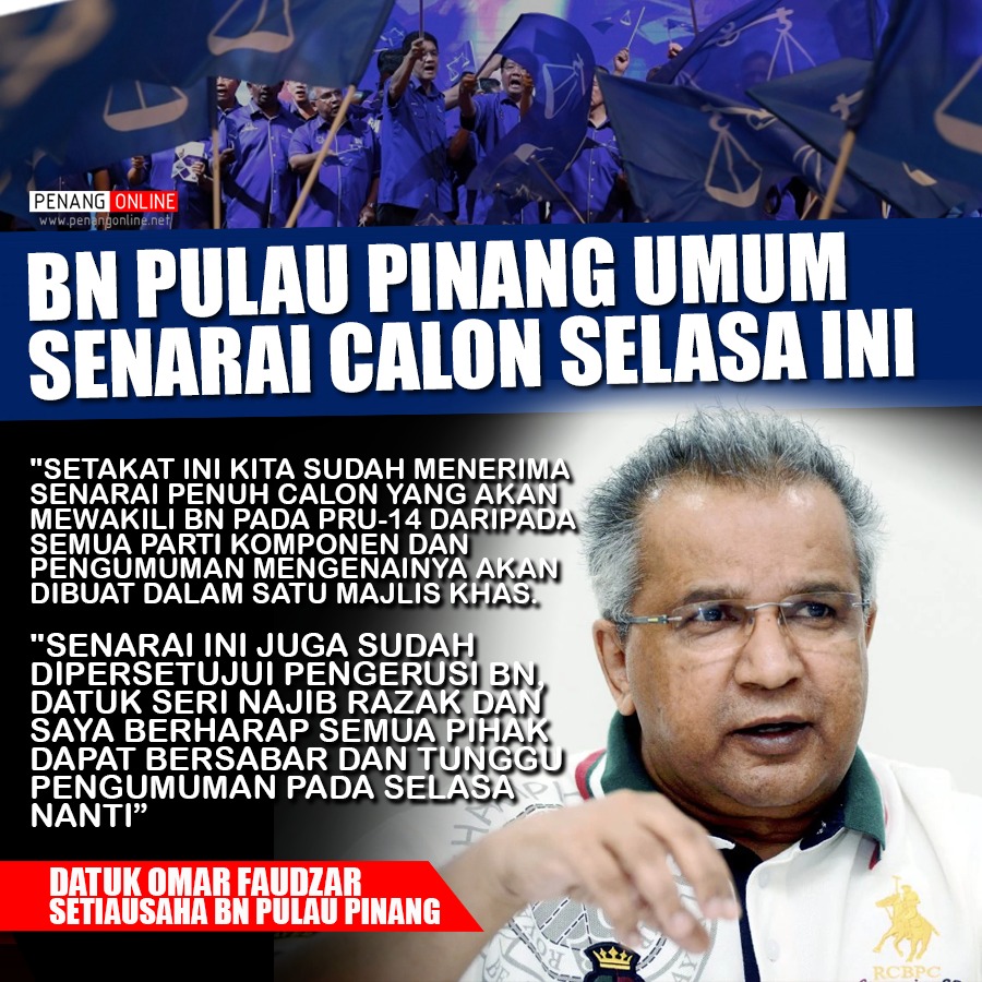 Bn Pulau Pinang Umum Senarai Calon Selasa Ini Penang Online