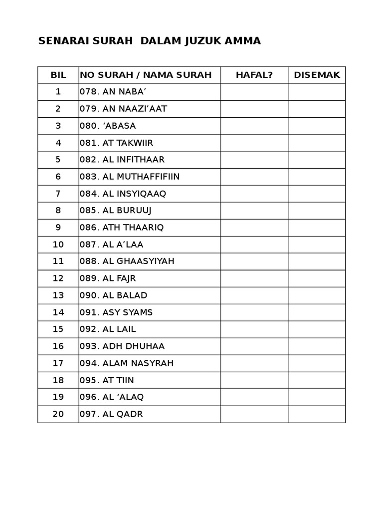 Senarai Surah Juzuk Amma Harus Ada Usaha San Integrasi Putatan Facebook