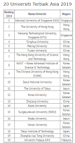 Penangkini Universiti Malaya Top 20 Universiti Terbaik Asia 2019