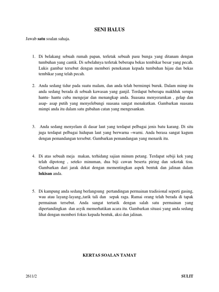 Kertas Soalan 2611 2 Sijil Pelajaran Pendidikan Seni Visual Facebook