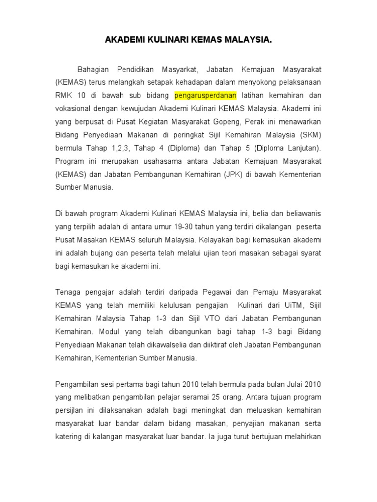 Akademi Kulinari Kemas Artikel Doc Document