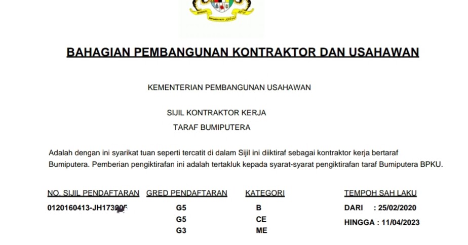 Sijil Kontraktor Kerja Taraf Bumiputra Laras Studio Design Build Facebook