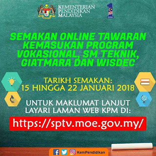 Semakan Atas Talian Tawaran Kemasukan Ke Program Kolej Vokasional Sekolah Menengah Teknik Giatmara Dan Wisdec Ambilan Januari 2018