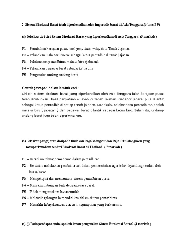 Sistem birokrasi barat di thailand. Kesan pelaksanaan sistem birokrasi barat 1 kesan selepas kedatangan islam 1 kesultanan melayu melaka 3 khalifah uthman bin affan 1 khulafa al rasyidin 2 konsep hijrah 1 lambang lambang negara 1 makna tamadun 1 maksud monumen 1 maksud tamadun 1 masyarakat zaman paleolitik 1 melaka 3 memartabatkan bahasa melayu 1 mohenjo daro dan harappa 1. Penasihat kewangan dan pelabuhan serta polis dari britain. H sistem birokrasi di thailand nota sejarah tingkatan 5 bab 1 raja mongkut melantik 80 orang penasihat barat untuk mengetuai pelbagai jabatan. Dasar penjajahan barat sistem birokrasi barat tidak memberi peluang sewajarnya kpd rakyat tempatan dlm sistem pentadbiran moden dasar ekonomi penjajah seperti sistem tanaman paksa di indonesia dan sistem poli di filipina menindas penduduk wujud jurang sosial antara rakyat dengan golongan pemerintah bangsawan 2.