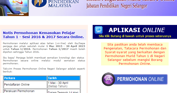 Pendaftaran Murid Tahun Satu Negeri Selangor Ambilan Tahun 2016 2017 Ciklaili