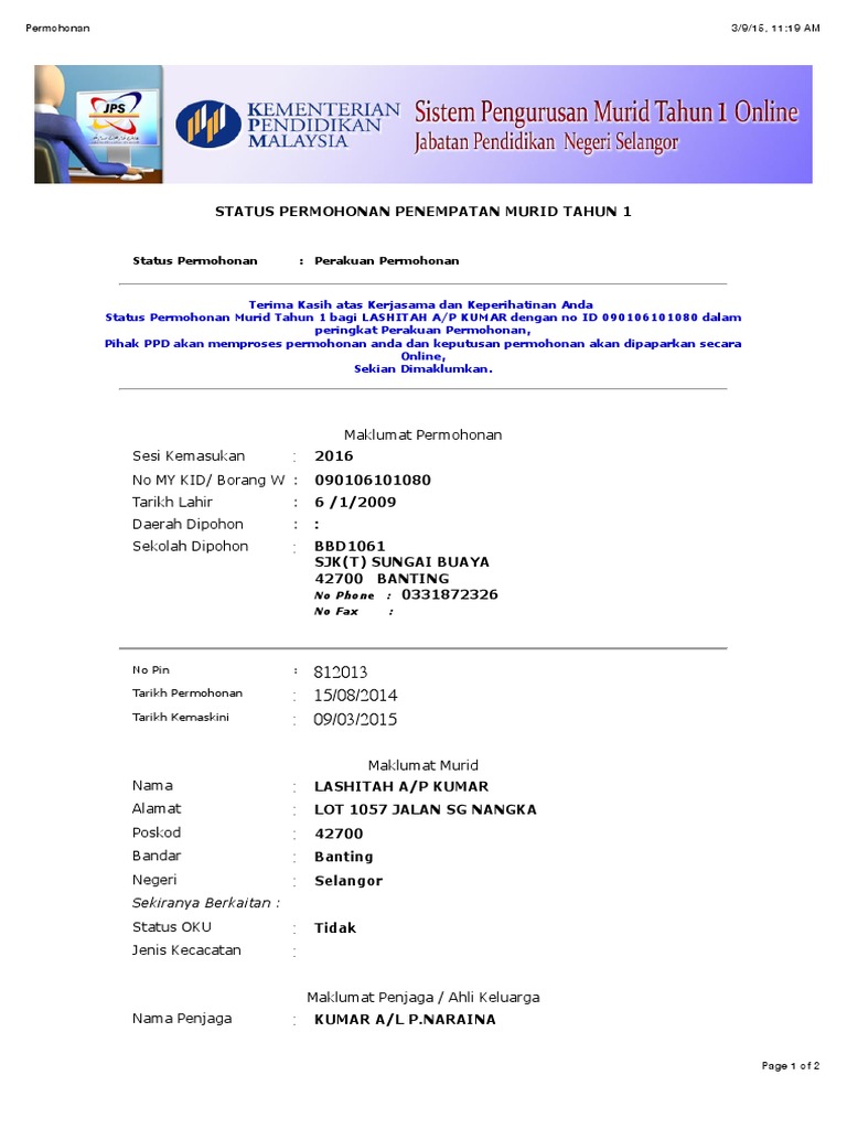 Sk Damansara Damai 2 Skdd2 Pendaftaran Murid Tahun 1 Negeri Selangor 2015 2016 Online Sumber Pendaftaran Murid Tahun 1 Negeri Selangor 2015 2016