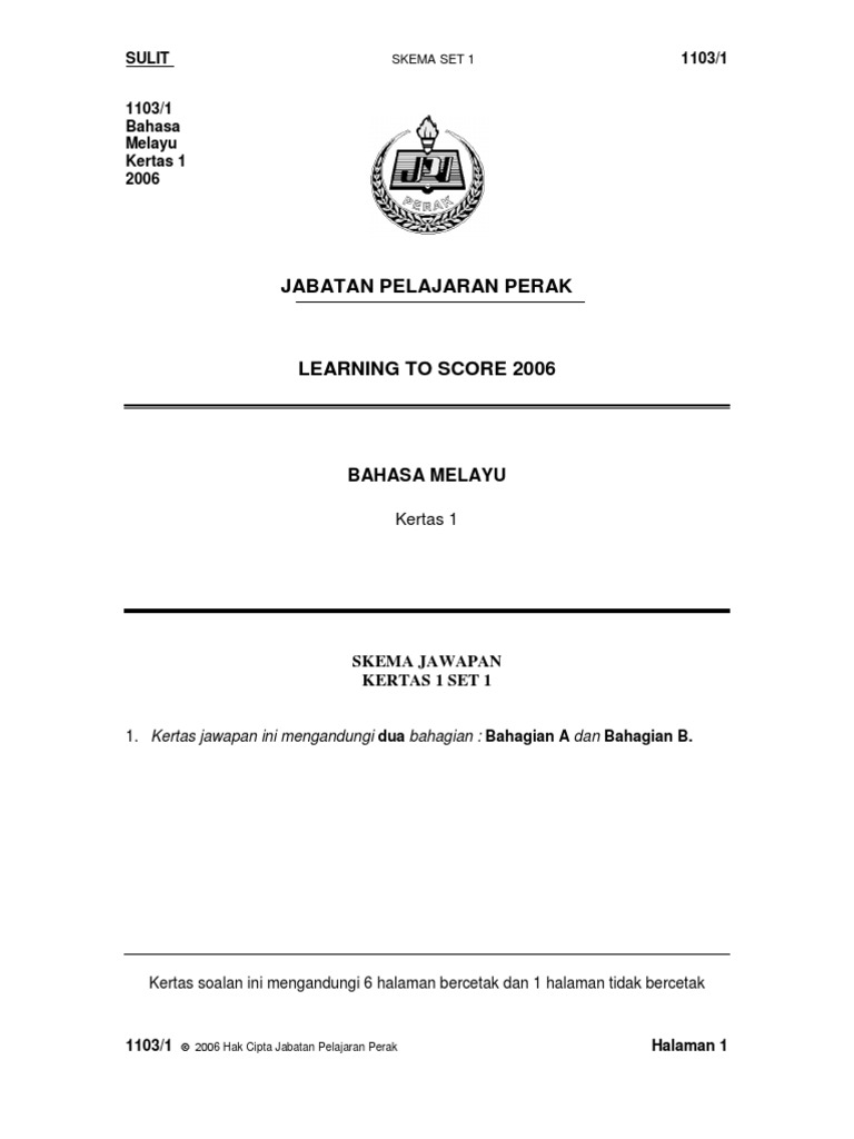 Spm Bahasa Melayu Skema Bm Kertas 1 Set 1