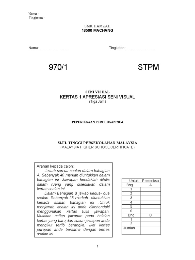 Soalan Stpm Seni Visual Penggal 1 By Zaki Flipsnack